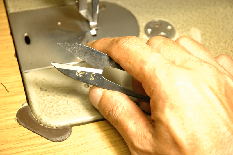 常に右手に握り込み作業を行ない、不要な糸をチョキチョキと切ります。