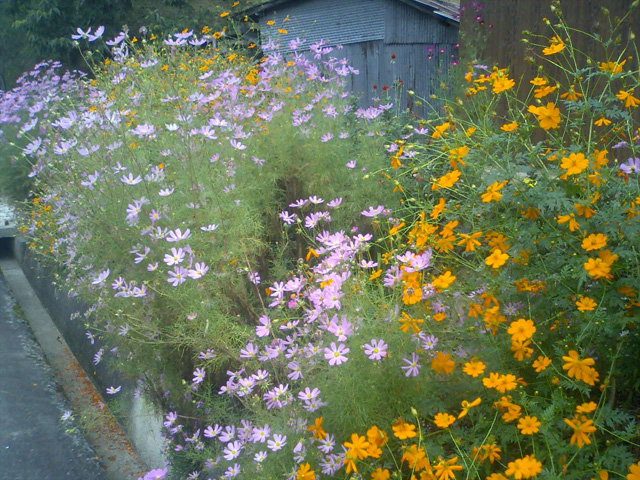 沿道には秋の花がこころを癒してくれる